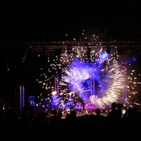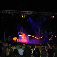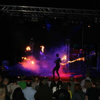 Übertroffen wurden die Eindrücke für Augen und Sinne nur vom Auftritt der "Firedancer" aus Dreieich bei Frankfurt am Main. Acht Feuerkünstler brannten auf dem Partygelände zu nächtlicher Stunde mit Feuer- und Lichtjonglage ein mächtig heißes Feuerwerk ab, das Seinesgleichen suchte.
