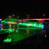 Mit Spannung wurde dann die Super-Illumination erwartet. Eine Armada von Scheinwerfern auf beiden Seiten der Lenne, am Wehr auf der Brücke und dem unteren Flusslauf produzierte eine wundervolle Licht- und Farbenshow, die mit stimmungsvoller Musik untermalt wurde.