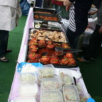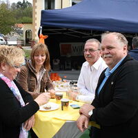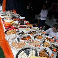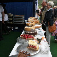 Ein leckeres Antipasti-Büffet hatte das Restaurant "Wilhelmshöhe" aufgebaut. Antipasti und Zwiebelkuchen zum Wein reichte der Weinhandel "Pferdestall". Beim Restaurant "Thuns" konnten die Gäste zwischen asiatischer Tomatensuppe, Reibekuchen mit Rauchlachs oder Spargel/Garnelencocktail wählen. Herzhaftes servierte der Hofladen Kohlhage mit Champignonpfanne und Rostbratwurst und das Restaurant "Vier Jahreszeiten" mit gefülltem Spanferkel und Bouillabaisse. Das Gasthaus "Zum Kohl" hielt Schnitzel und Rosmarinkartoffeln bereit. Der Ütterlingser Stadtteiltreff bot schließlich Hirtenpfanne und Auberginenauflauf zum türkischen Tee und Mocca an. Für den süßen Geschmack hatte das Café Merz ein üppiges Tortenbüffet aufgebaut. Ein Eiswagen durfte natürlich auch nicht fehlen.