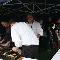 Viele fleißige Hände der Woge-Werdohl bauten schon sehr früh am Sonntagmorgen eine Schlemmermeile an der Dammstraße auf. Um 11.00 Uhr ging es auf dem Eventgelände gleich weiter mit "Woge-Kulinarisch". Zu Beginn stimmte der Werdohler Shanty-Chor die Gäste gebührend auf einen schönen Tag an der Lenne ein. Noch bei bewölktem Himmel konnte sich die Woge-Werdohl auch beim kulinarischen Teil von "Genuss am Fluss" über zahlreiche Besucher auf den Lennewiesen freuen. Und die hatten einen guten Appetit - und die Qual der Wahl.