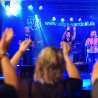Dieses Jahr ging es auch musikalisch noch spektakulärer zu, als die Jahre davor. Dafür warteten Veranstalter und Sponsoren gleich mit zwei erstklassigen Live-Bands auf, nämlich „Superversion“ und „Ohne Yoko“. Claus Schulte, Klaus Sonnabend und Martin Szalay. Sie sind der „harte Kern“ von „Superversion“. Um 20 Uhr begann die Formation „Superversion“. Vielen Lüdenscheidern bestens bekannt sein dürfte Bandleader Klaus Sonnabend, z.B. durch das Duo „Ich & Du“ und seine Band „Sonnabend“. In der Formation „Superversion“ präsentierten Klaus und seine Bandmitglieder Pop-, Funk- und Soul-Klassiker sowie aktuelle Hits auf frische und unterhaltsame Weise und zudem auf musikalisch höchstem Niveau. Die Vollblutmusiker interpretierten dabei 100% Live die besten Originalversionen bekannter Bands sowie originelle Coverversionen, aus denen sie immer wieder neu ihre eigenen „Superversionen“ kreierten. Zum Repertoire der Band gehörten Songs von Bruno Mars, Police, Prince, Jamiroquai, Pharell Williams, Average White Band, Stevie Wonder, Freakpower, Alicia Keys, Jessie J, Jupiter Jones, Earth, Wind & Fire, James Brown, Adèle und vielen anderen. Die Musiker von „Superversion“ bestachen durch jahrelange Erfahrungen auf den großen Bühnen im In- und Ausland und haben bereits mit national und international bekannten Künstlern wie Katrina and the Waves, Suzie Quatro, Andrea Bocelli, Guildo Horn, Kate Yanai, Nino de Angelo, Paul Kuhn, Sax in the city oder Richard Ross gearbeitet.