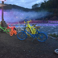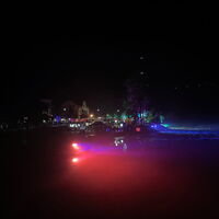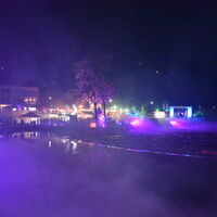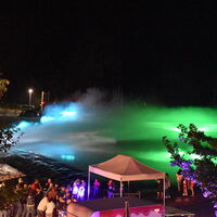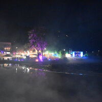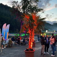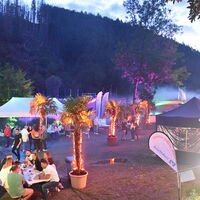 - Karibikfeeling an der Lenne entstand durch eine Palmenlandschaft, Schirmen und Sitzgelegenheiten.
