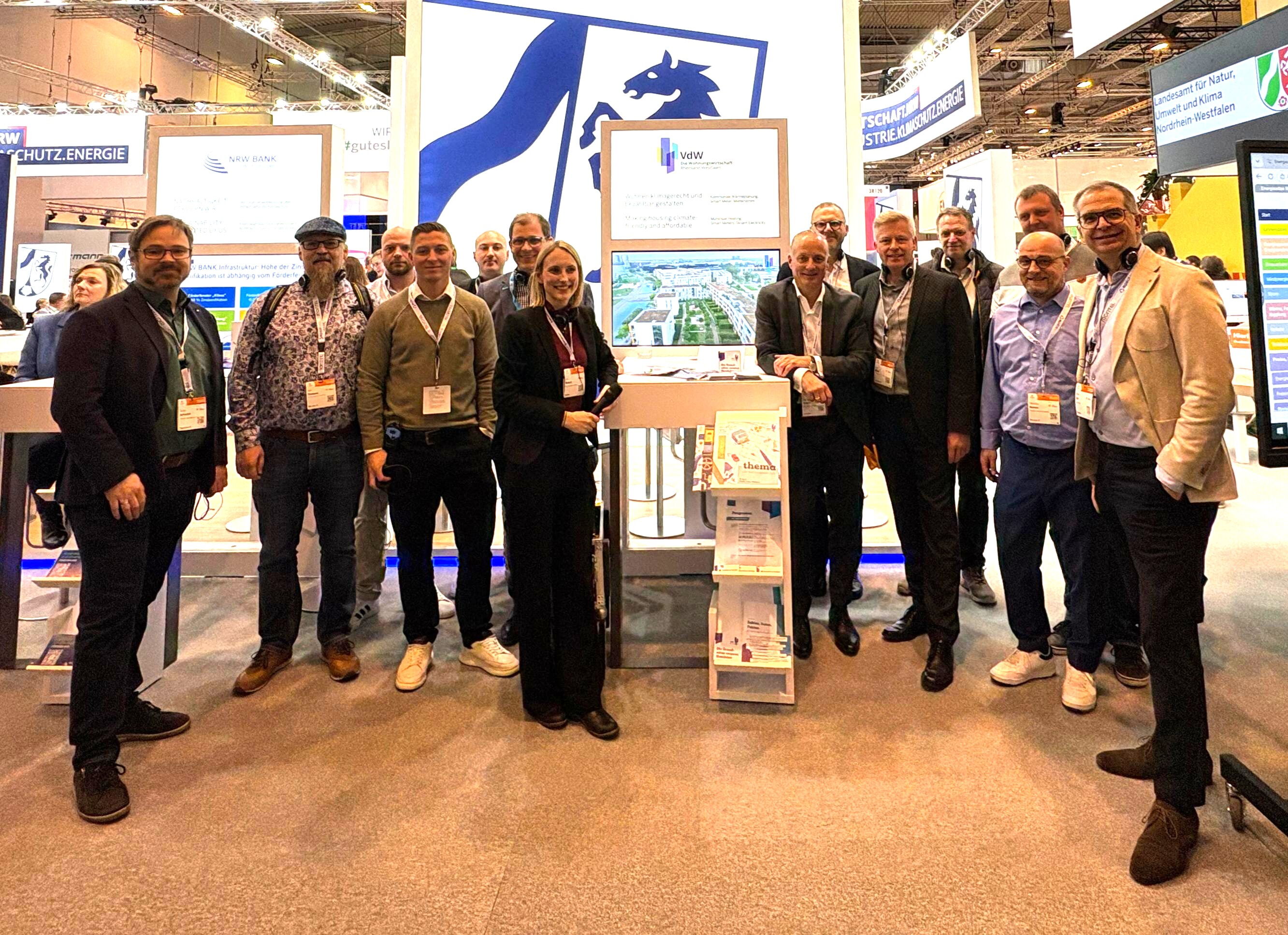 Wie in den Vorjahren hatte der Verband der Wohnungswirtschaft Rheinland Westfalen e.V. am Nachmittag des 10.02.2026 wieder einen Rundgang auf der E-World in Essen mit verschiedenen interessanten Stationen vorbereitet. Unser Chef Ingo Wöste war wieder mit von der Partie. Es wurden wieder viele neue Eindrücke gesammelt, die unserem Wohnungsunternehmen helfen sollen, unser Ziel, unsere Wohnungsbestände bis zum Jahr 2035 nahezu klimaneutral zu haben, zu erreichen.