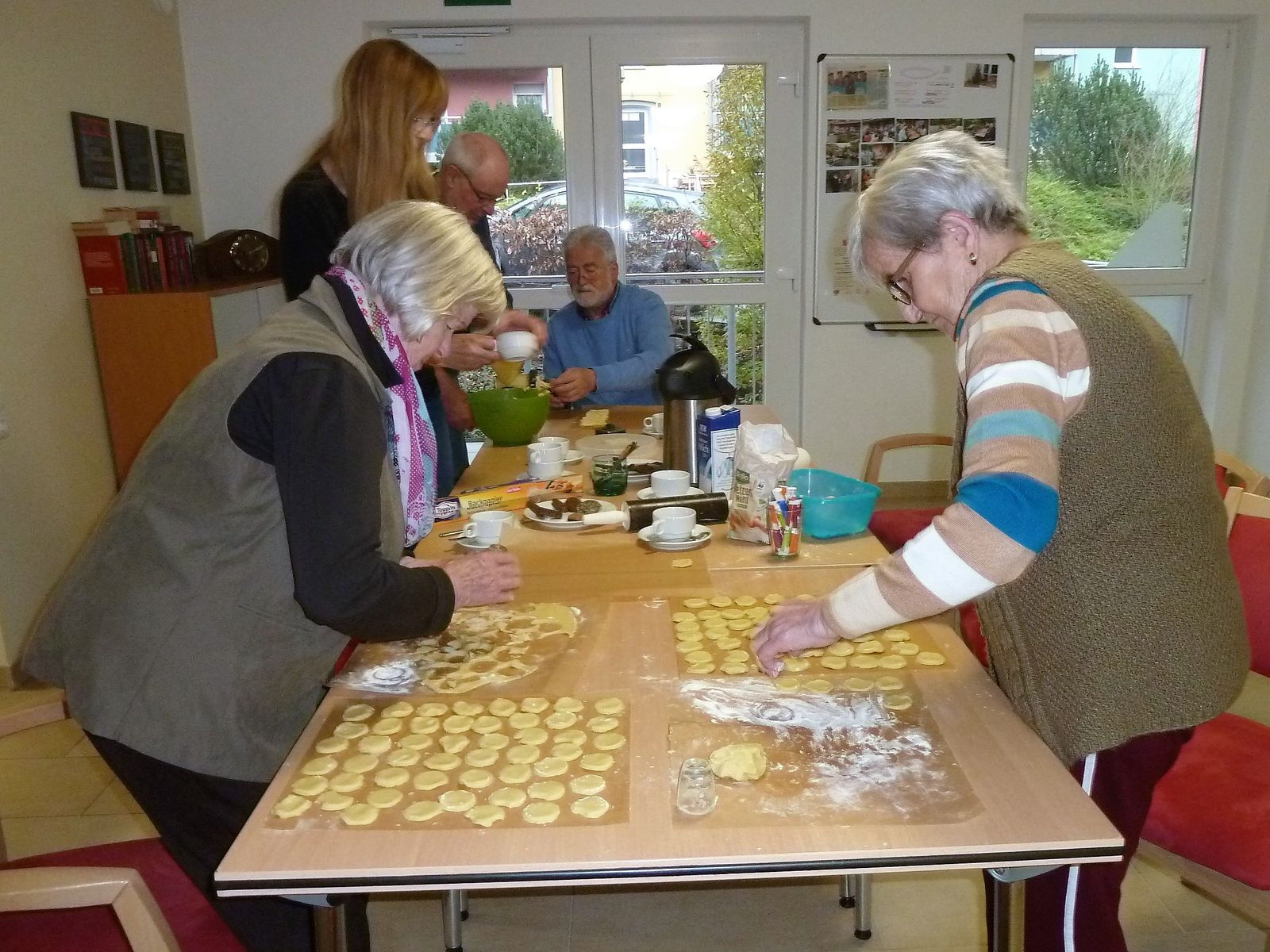 Viel Spaß hatten die Bewohner des Hauses Danziger Straße 9 sowie Besucher am Mittwochnachmittag 15. November beim Plätzchenbacken. Ab 14 Uhr fanden sich die Backwilligen im Gemeinschaftsraum des Hauses Danziger Straße 9 ein und stärkten sich für die kommenden Aufgaben mit Kaffee und mit - bis dahin natürlich noch – gekauften Plätzchen.