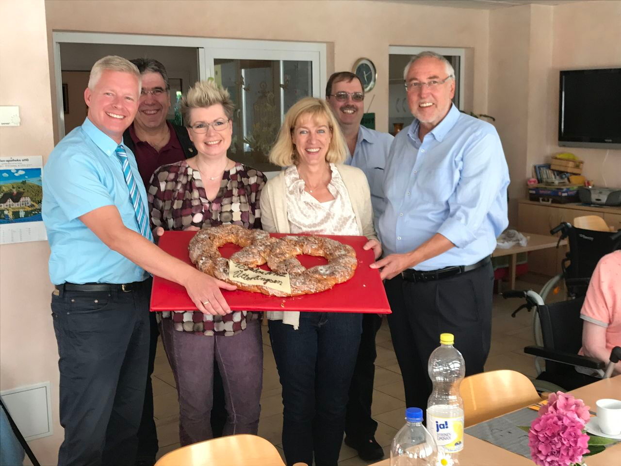 2007 wurde unser erstes Nachbarschaftshilfezentrum an der Danziger Straße im Werdohler Stadtteil Ütterlingsen eröffnet. Frau Voßbeck-Kayser gratulierte am letzten Dienstag der Woge-Werdohl und brachte den pflegebedürftigen Bewohner/innen einen leckeren Geburtstagskuchen mit.