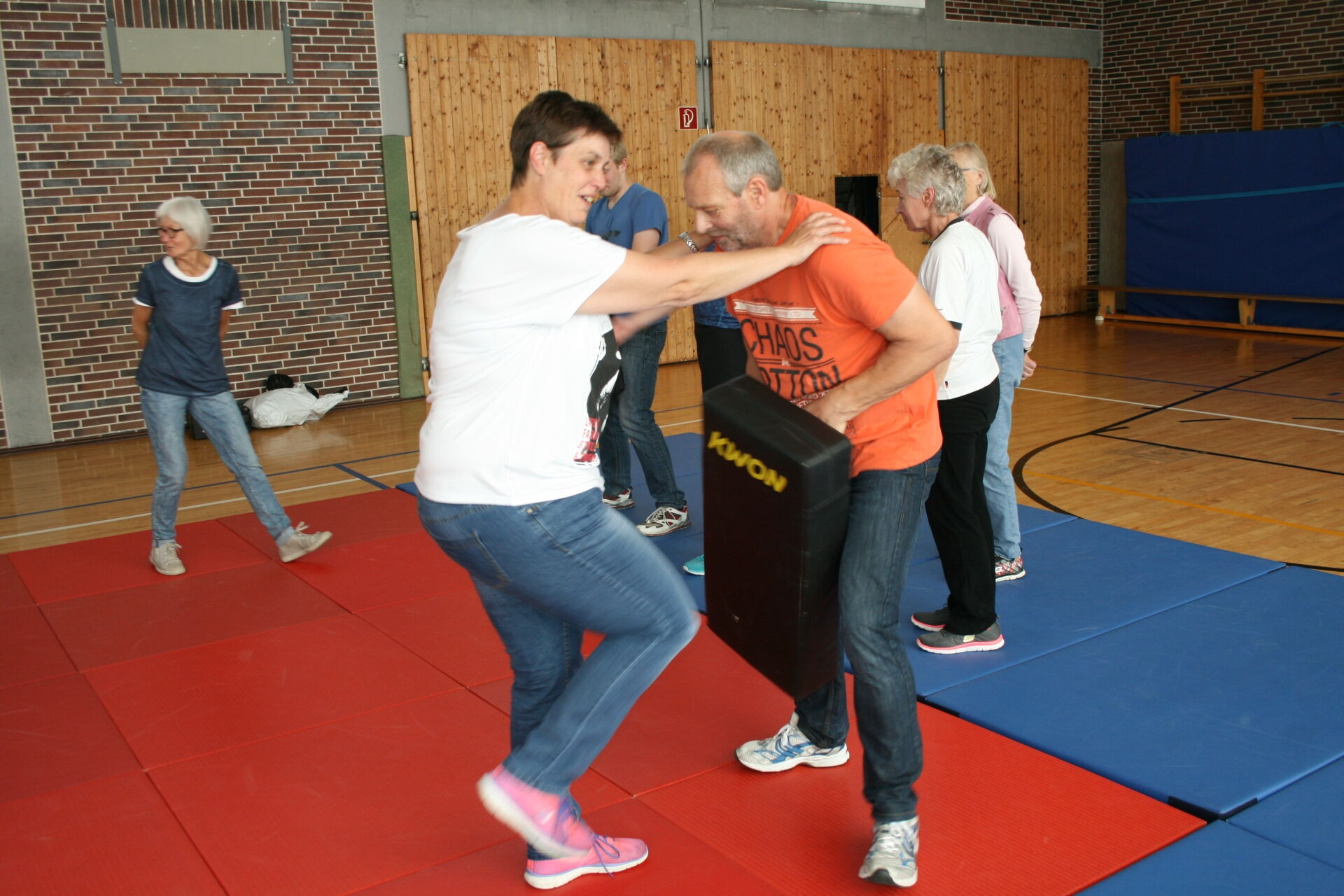 Einen lehrreichen und bewegungsintensiven Nachmittag verbrachten die mehr als 10 Teilnehmerinnen des Vortrages „Selbstbehauptung für Frauen und Mädchen ab 14 Jahren“ am letzten Dienstagnachmittag ab 16 Uhr in der Schulturnhalle in Ütterlingsen. Die Kooperation zwischen Grundschule, Kindergarten, Jugendeinrichtung und Quartiersmanagement hatte es möglich gemacht, dass diese Veranstaltung stattfand.[nbsp]