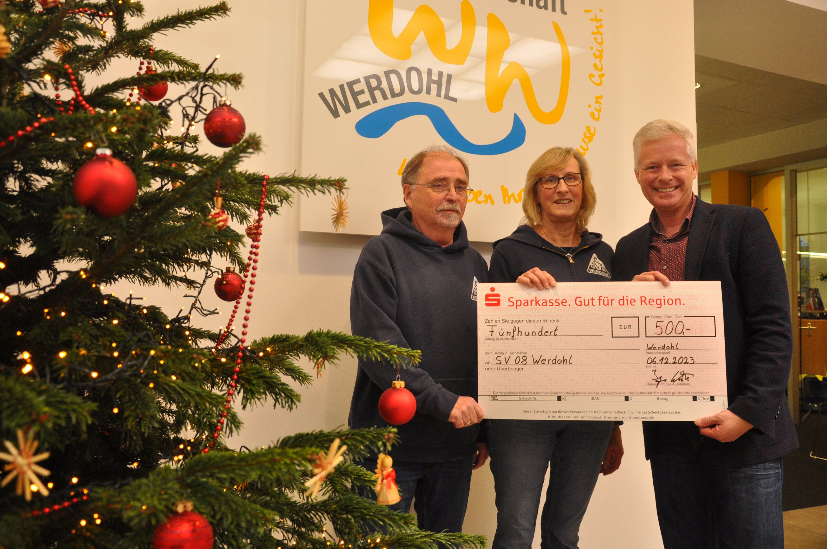 500,00 € Weihnachtspende gehen 2023 an den Schwimmverein SV 08 Werdohl